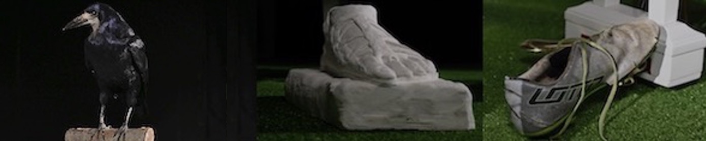 On the piano sits a large stuffed black crow – recalling the talking bird in Pasolini’s film, “Uccellacci Uccellini.” Under it lie assorted old soccer shoes (Pasolini was a soccer enthusiast) and a half-sized model of the famous Piè di Marmo (a Roman marble foot near the Pantheon). The piano is programmed to play a self-generating music composed by Alvin Curran and digitally realized by Angelo Maria Farro. This music has no beginning and no end, and can include references to musics of all peoples and all times. It exists only in the moment in which you listen to it; short and long silences are programmed into the software.
