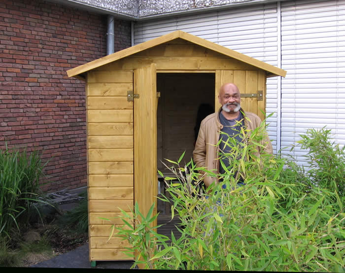 Gardening with John 1.1 (2006), sound installation for small garden shed, two iPods, flat panel loudspeakers, and dried mushrooms. Commissioned by Zerynthia for sonambiente 2006 in Berlin (Akademie der Künste am Hanseatenweg 10, June 1 through July 16) and re-presented in the Moyland Castle Museum, the Americans Festival in Groningen, the Fondazione Mudima in Milano, Palazzo Lanieri in Gorizia, Borgo Valsugana, fiera Artissima 17 in Torino, Membra Disjecta for John Cage in Vienna and Prague, and No Man's Land in Loreto Aprutino. Listen. Watch interview. Videos in Berlin and Loreto Aprutino.